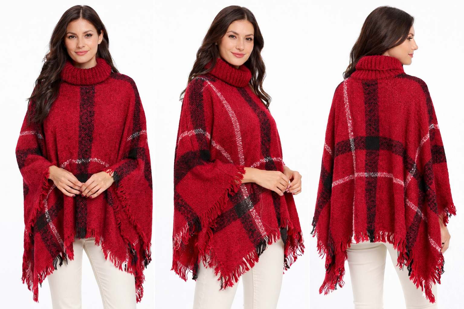 Women's Turtleneck Poncho Sweater Comfort and Style Knit Sweater Wrap with tassels