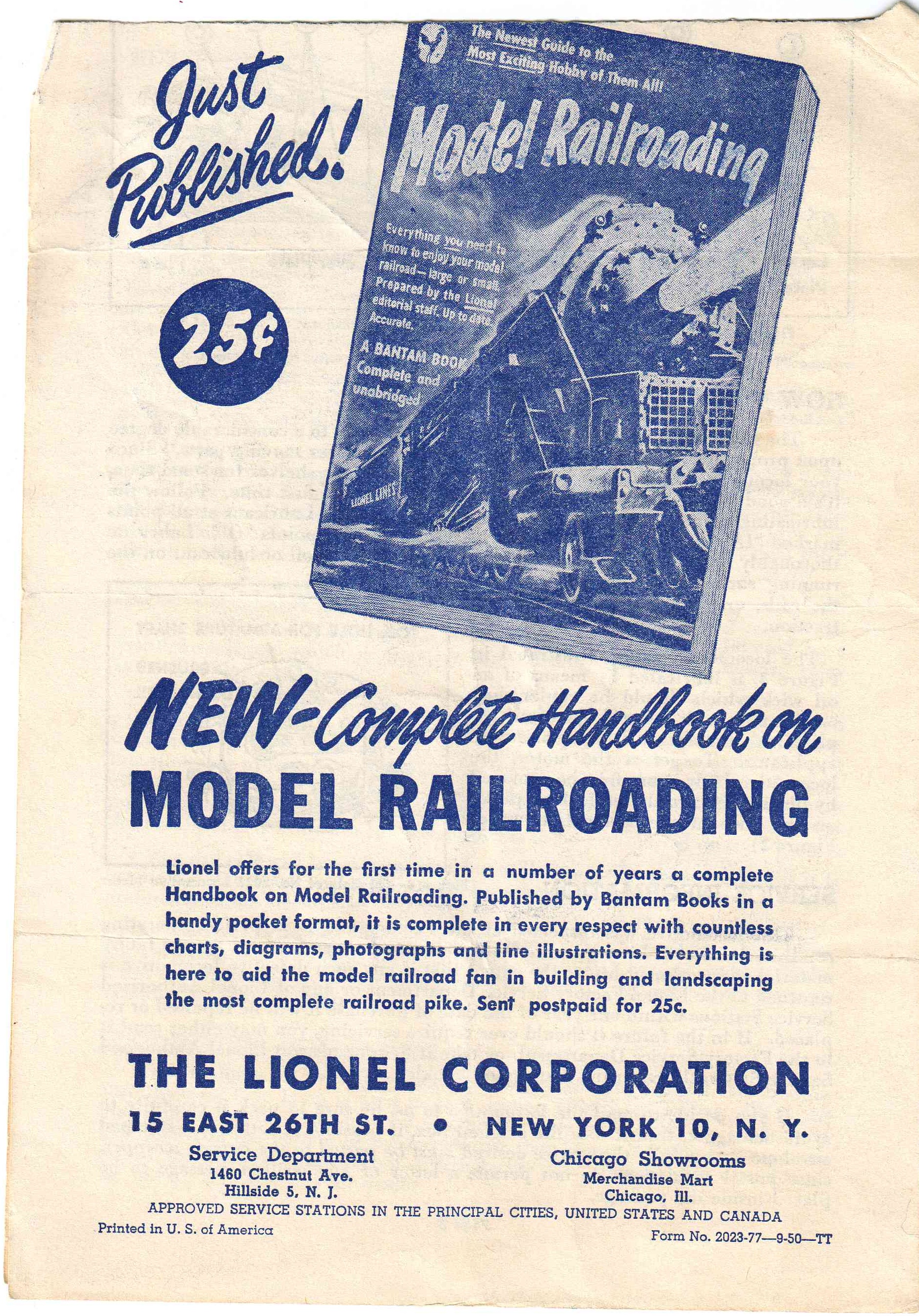- No. 2023 Twin Diesel Locomotives - Ad on the back for ‘New-Complete Handbook on Model Railroading’.