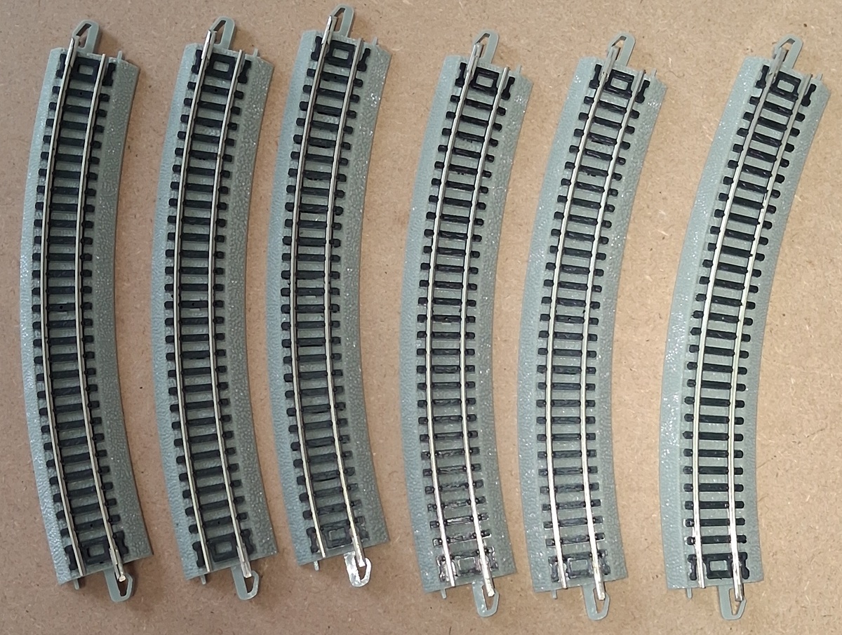 N SCALE N11 1/4"R 30"CURVE E-Z TRACK - Set of 6