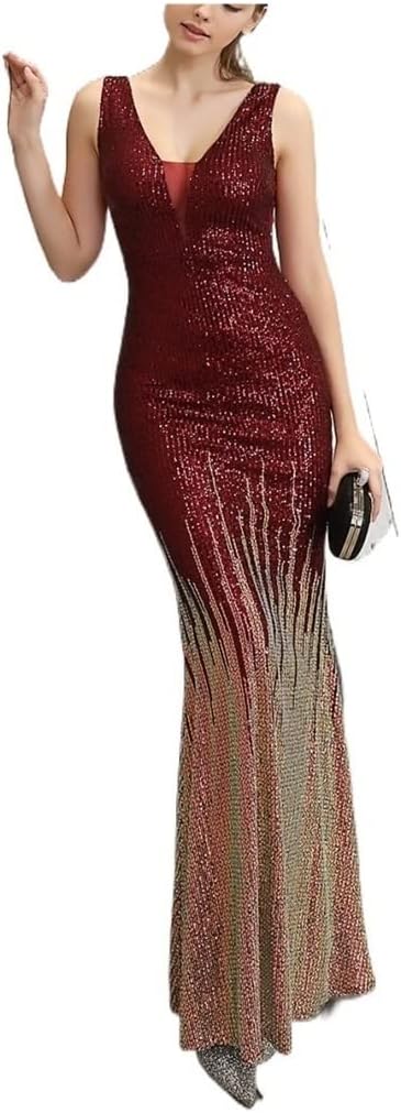Glittering Evening Gown Formal Dresses Deep Red Gold Sequin Dress Evening Dress Floor Length Prom Dress