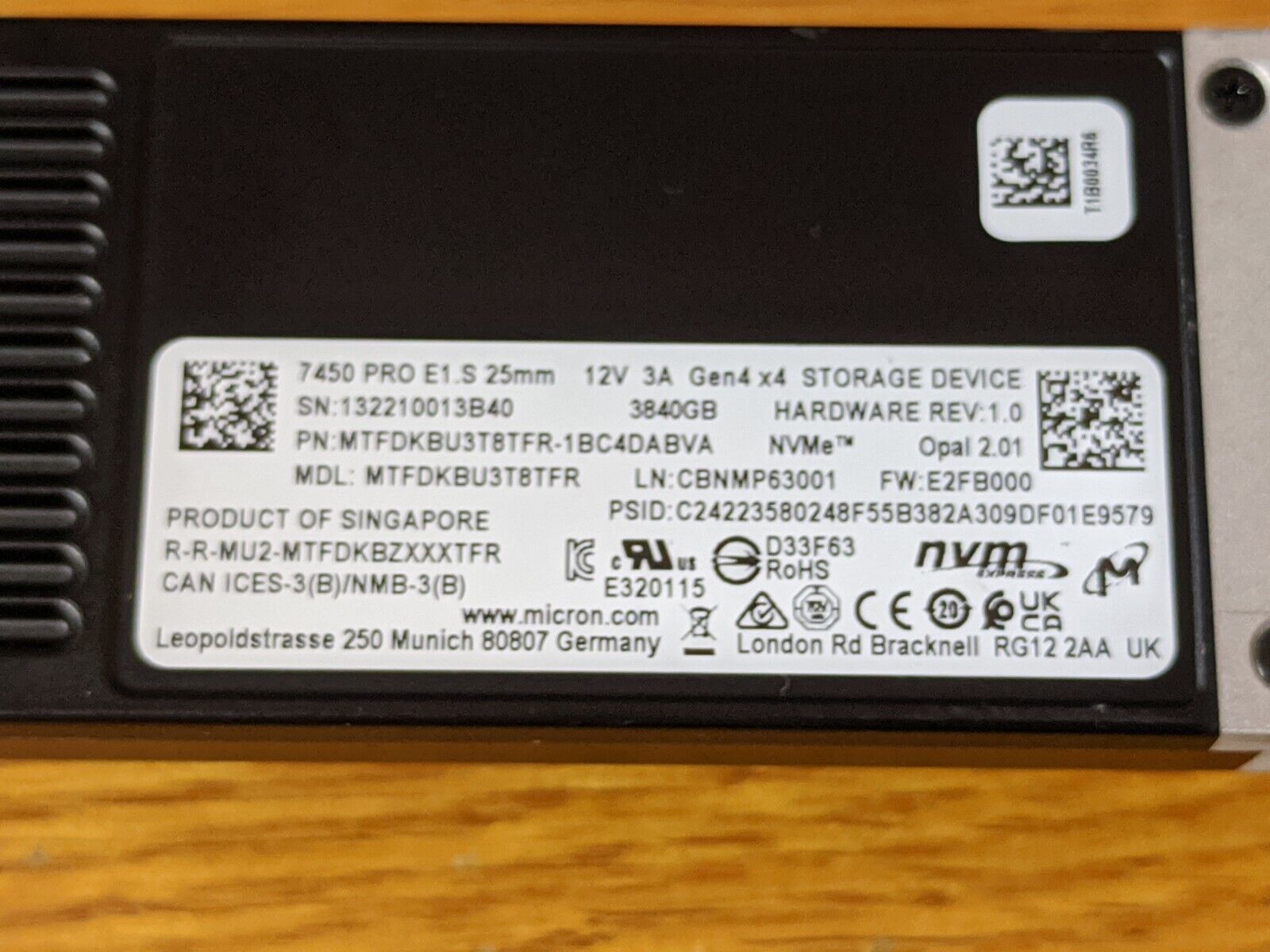 Micron 7450 PRO 7.68 TB Solid State Drive - E1.S - EDSFF Internal - PCI Express NVMe (PCI Express NVMe 4.0 x4) - Read Intensive - TAA Compliant
