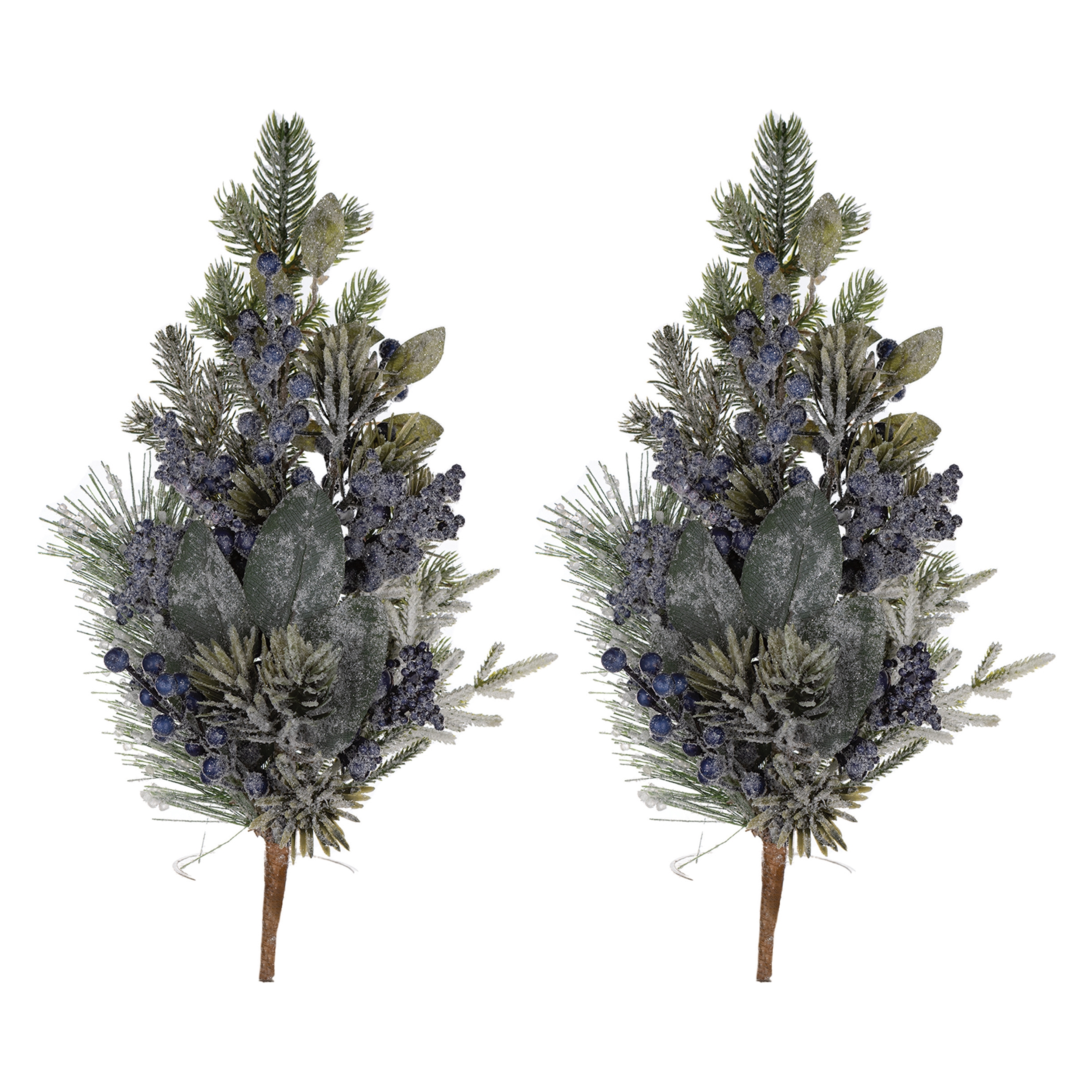 Bring a festive, nature-inspired charm to your holiday decor with this exquisite set of Frosted Blueberry Pine Sprays. Designed with a beautiful mix of cool blue and green tones, these sprays are accented with rustic pinecones and lifelike blueberries, adding a wintry elegance to any space. Made from high-quality plastic and foam, these durable sprays will last for seasons to come. Whether displayed in a vase, woven into a garland, or tucked into a holiday wreath, these versatile pieces will elevate your seasonal decor. Perfect for decorating your home or gifting to a loved one, these sprays are a must-have for the holiday season! Sold in a set of two matching pieces to create a balanced display in your home.