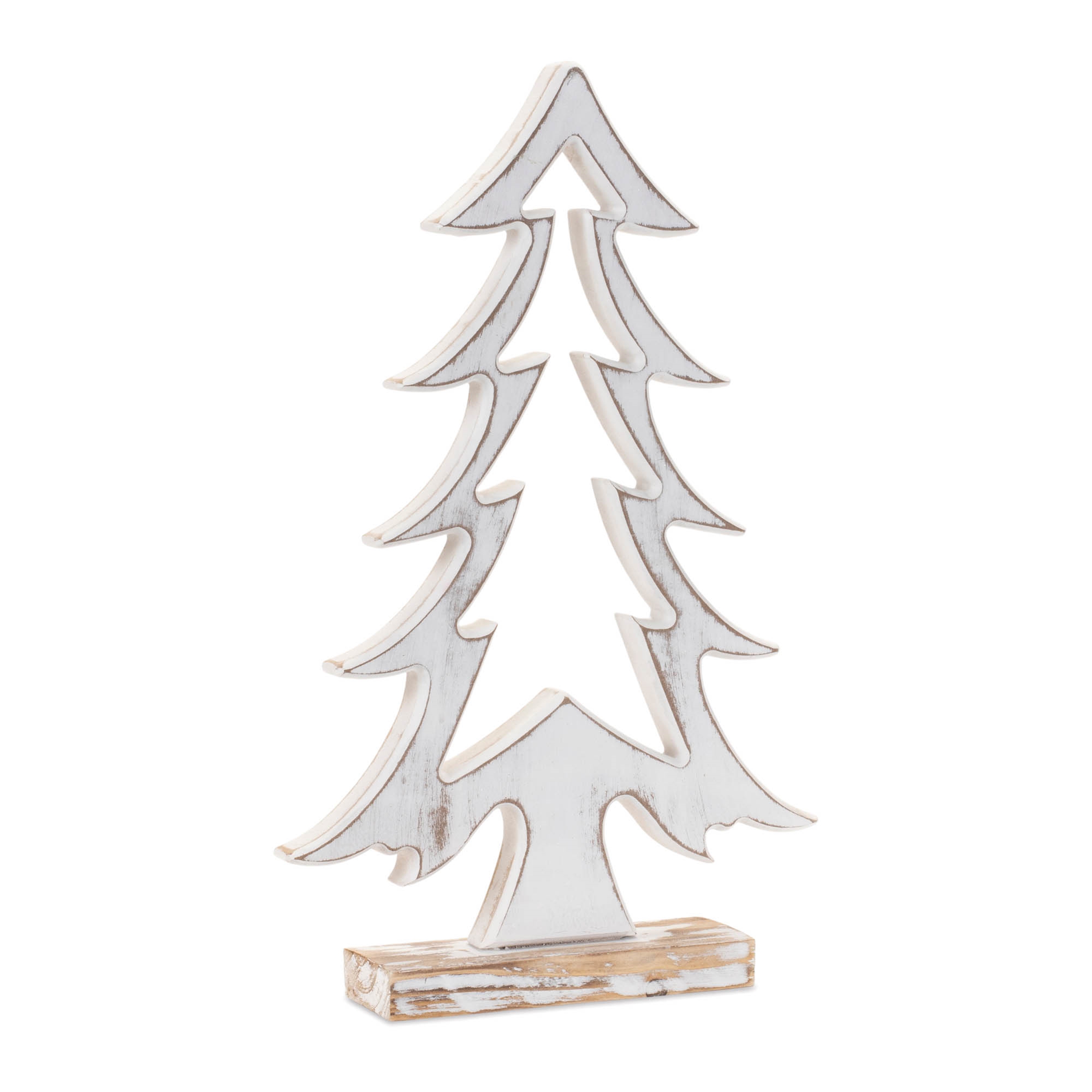 Add a touch of rustic charm to your holiday decor with this Wood Pine Tree Outline set. Featuring wintry white tones with a trendy washed finish, these trees showcase a sleek pine tree outline design with natural wood grain accents. Sold in a set of three assorted sizes, these trees are perfect for displaying on tabletops, shelves, or mantels. Pair them with a floral arrangement or holiday figurines to create a festive and cozy atmosphere this season.
