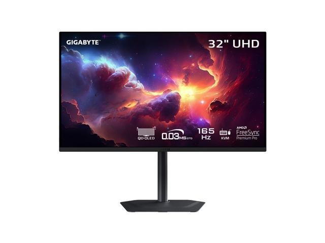GIGABYTE - - 32" QD-OLED Gaming Monitor - UHD 3840x2160-165Hz - 0.03ms GTG - AMD FreeSync Premium Pro - Type C KVM - HDMI, DP - Height Adjustable, Black
