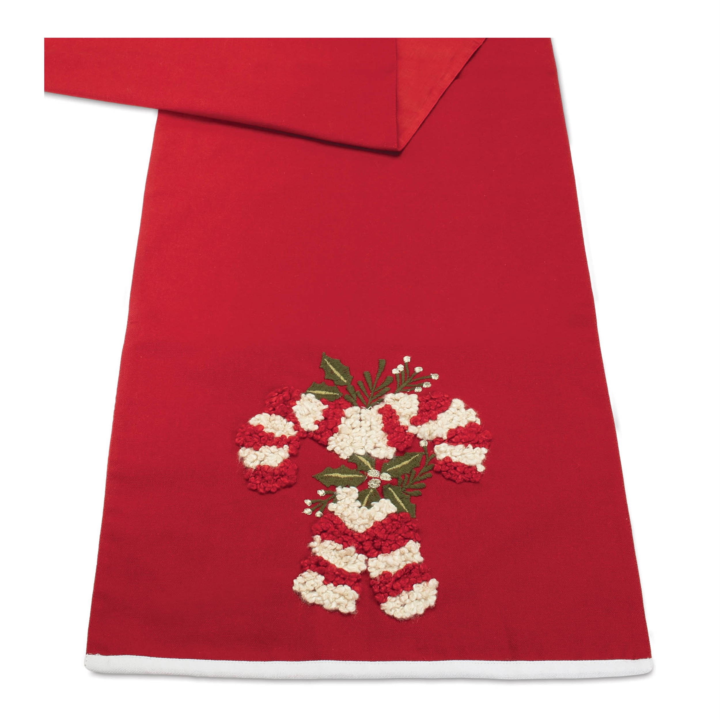 Bring the sweet spirit of Christmas to your home with the Embroidered Candy Cane Table Runner. Featuring festive red and white tones and an elegant embroidered candy cane pair design with holly leaf accents, this table runner adds a cheerful touch to your holiday decor. Perfect for displaying in the center of your dining table during Christmas celebrations or as an accent piece on your entryway table, this runner enhances the charm of your seasonal display with its vibrant and timeless design.