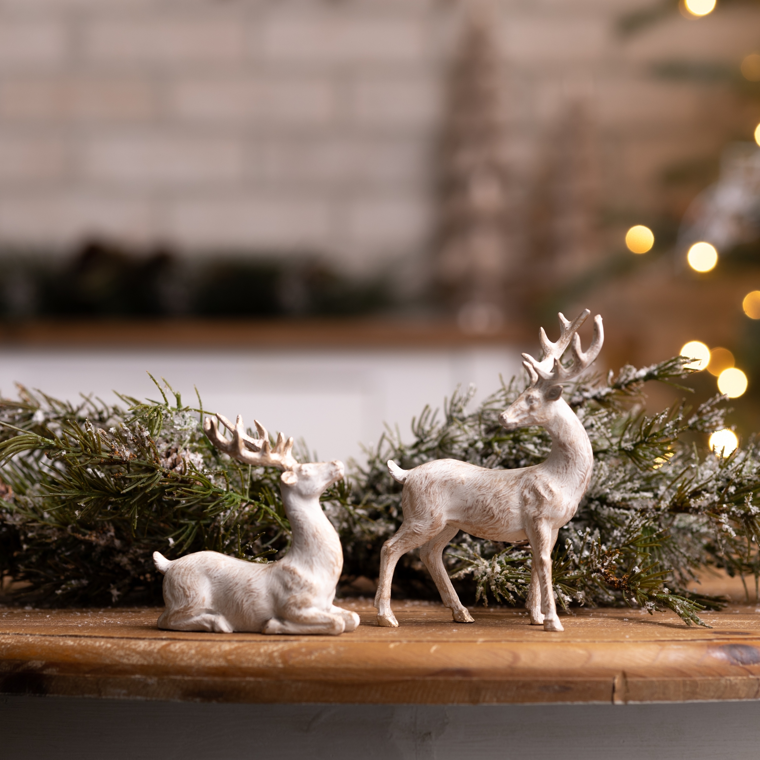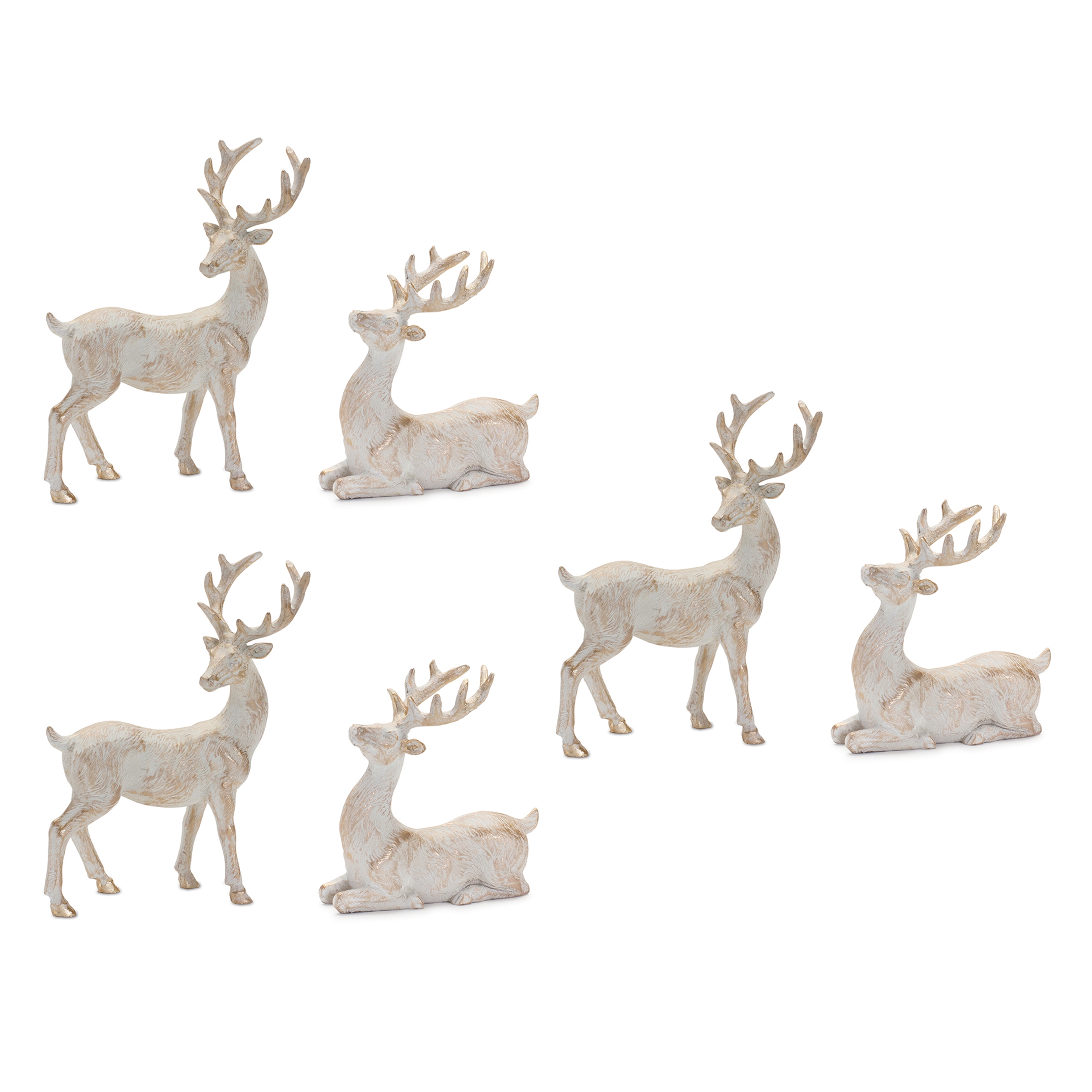 Add a touch of elegance to your holiday decor with this stunning set of Brushed Gold Deer Figurines. Featuring two unique designs, these graceful deer bring a sophisticated woodland charm to any festive display. The combination of wintry white tones and a brushed gold finish makes them perfect for traditional and modern holiday settings alike. Crafted from high-quality polyresin, these durable figurines will be a cherished part of your seasonal decor for years to come. Display them on your mantle, bookshelf, or tabletop, or gift them to a loved one for a timeless holiday accent. Sold in a set of six pieces with two assorted designs to create a balanced and versatile display in your home.