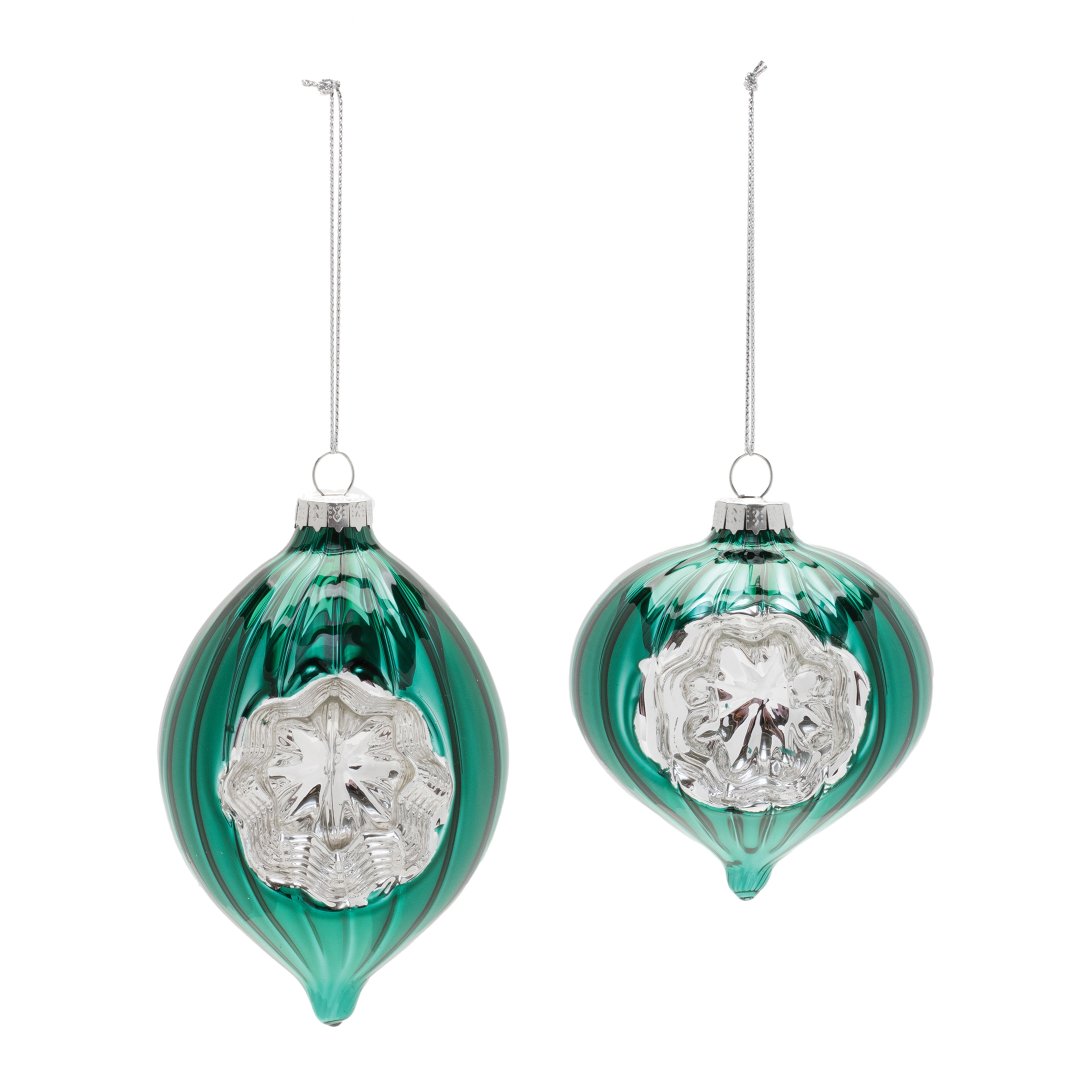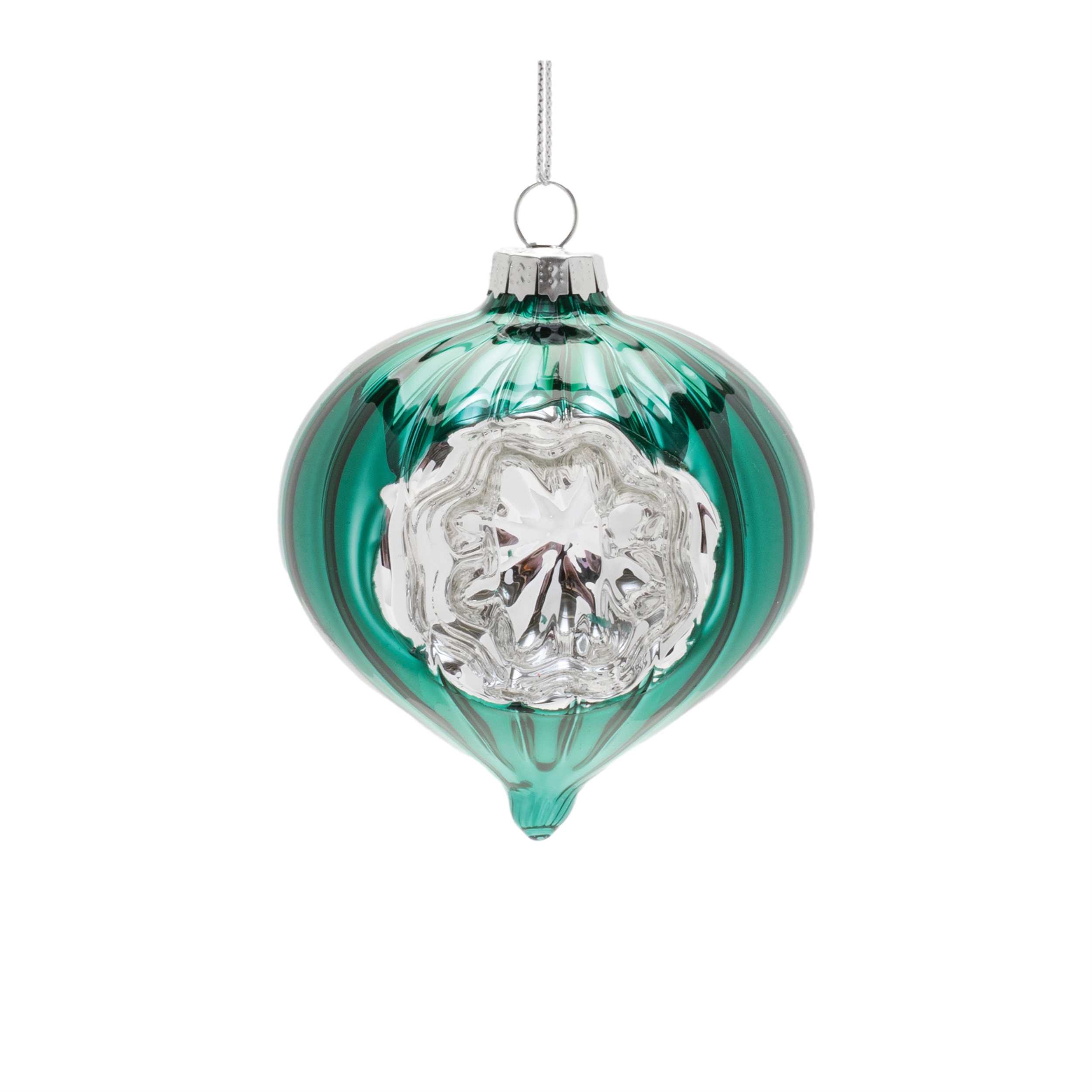 Infuse your holiday d cor with vintage elegance using this stunning set of green glass reflector ornaments. Designed with a radiant jewel-tone green finish and shimmering silver starburst insets, each ornament captures the light for a magical holiday glow. The assorted sizes and classic silhouette make this set a perfect addition to traditional or retro-inspired trees.