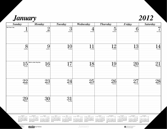 House of Doolittle Economy Compact Desk Pad, 12 months, January-December, size 18. x 1 , with reinforced black corners. Compact in size for workstation, home, dorm, etc. Printed on 100% recycled paper containing 100% post-consumer waste with soy inks. Made in the USA. 12 Months January-December