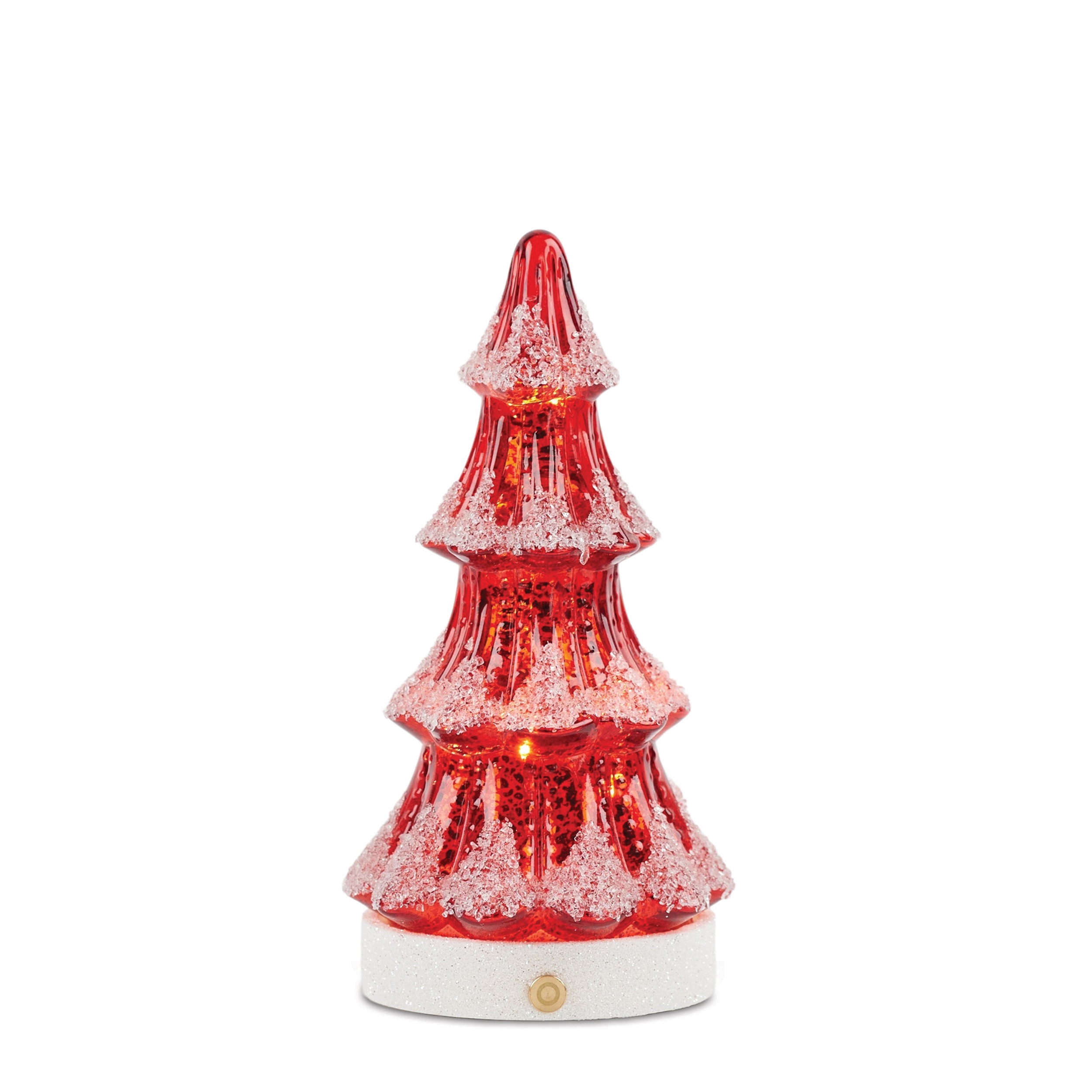 Bring a festive glow to your holiday decor with the LED Mercury Glass Pine Tree set. Featuring wintry red and white tones with a chic mercury glass finish and snowy beaded accents, these trees create a charming and cozy atmosphere. Powered by an included USB cord and with a convenient on/off button on the base, this set of two assorted sizes is perfect for adding a touch of holiday magic to any tabletop, shelf, or mantle.