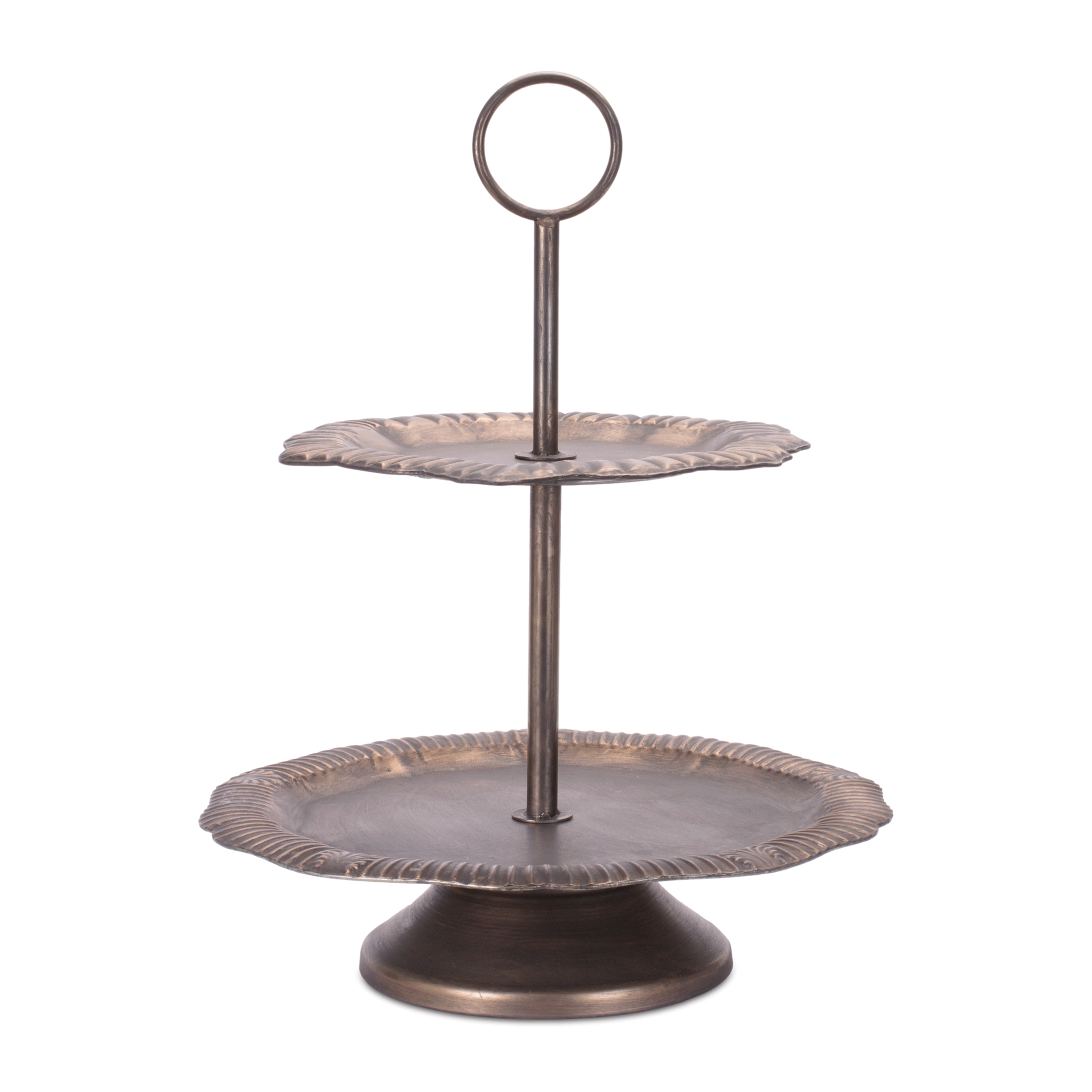 The Tiered Bronze Metal Tray adds a touch of elegance to any space with its chic gold and bronze tones, brushed metal finish, and subtle distressing. Featuring a sophisticated round shape with ornate pattern trim and a two-tiered design, this tray elevates your decor while providing ample space for displaying your favorite items. Perfect for showcasing bud vases, candles, or novelty decor, it s a stunning addition to your coffee table or end table. A flawless fit for contemporary, luxury, or glam-inspired interiors.